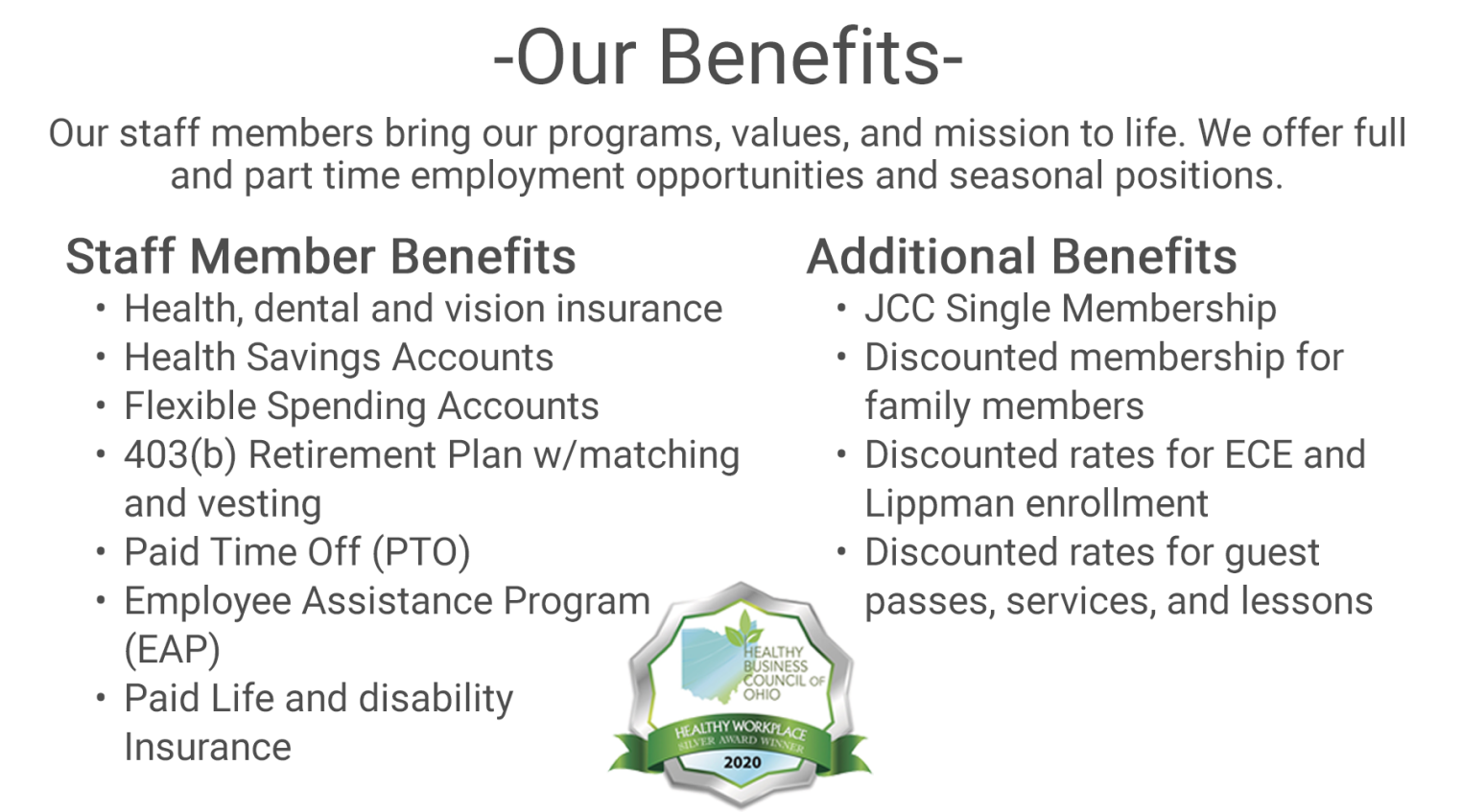 Interested in learning more about working at The Shaw JCC of Akron? Contact Erica Hess, our Human Resources & Payroll